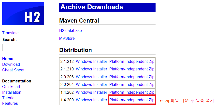 ※ 만약 이미 설치하고 실행까지 했다면 다시 설치한 이후에 rm test.mv.db 파일을 꼭 삭제한 후 서버를 내렸다가 재접속해서 들어오기